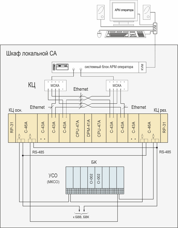 Основным блоком в шкафу УСО является БК, обеспечивающий информационную связь с КЦ по Сети УСО, а также с блоками БВВ и БВК по Сети Ввода-Вывода по дублированным линиям связи.